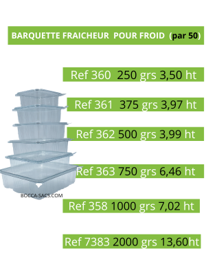 BOCCA-SACS : GROSSISTE POUR EMBALLAGES ALIMENTAIRES PROFESSIONNELSBocca-Sacs, fournisseur d'emballages pour les métiers de bouche depuis 1931, propose des solutions d'emballage fabriquées en France, respectueuses des normes environnementales. Nous offrons une large gamme d'emballages alimentaires de qualité pour les professionnels de la restauration rapide, les traiteurs et les primeurs : barquettes, sacs en papier kraft, papier alimentaire, pots et boîtes. Nos produits, disponibles en plastique, carton, aluminium, coton et papier, sont micro-ondables, jetables ou réutilisables, et adaptés à la vente à emporter ou au transport de fruits et légumes. Bocca-Sacs met également l'accent sur des alternatives écologiques, comme les emballages en coton bio, légers, résistants et réutilisables. Faites confiance à Bocca-Sacs pour des emballages pratiques, écologiques et de qualité. |
