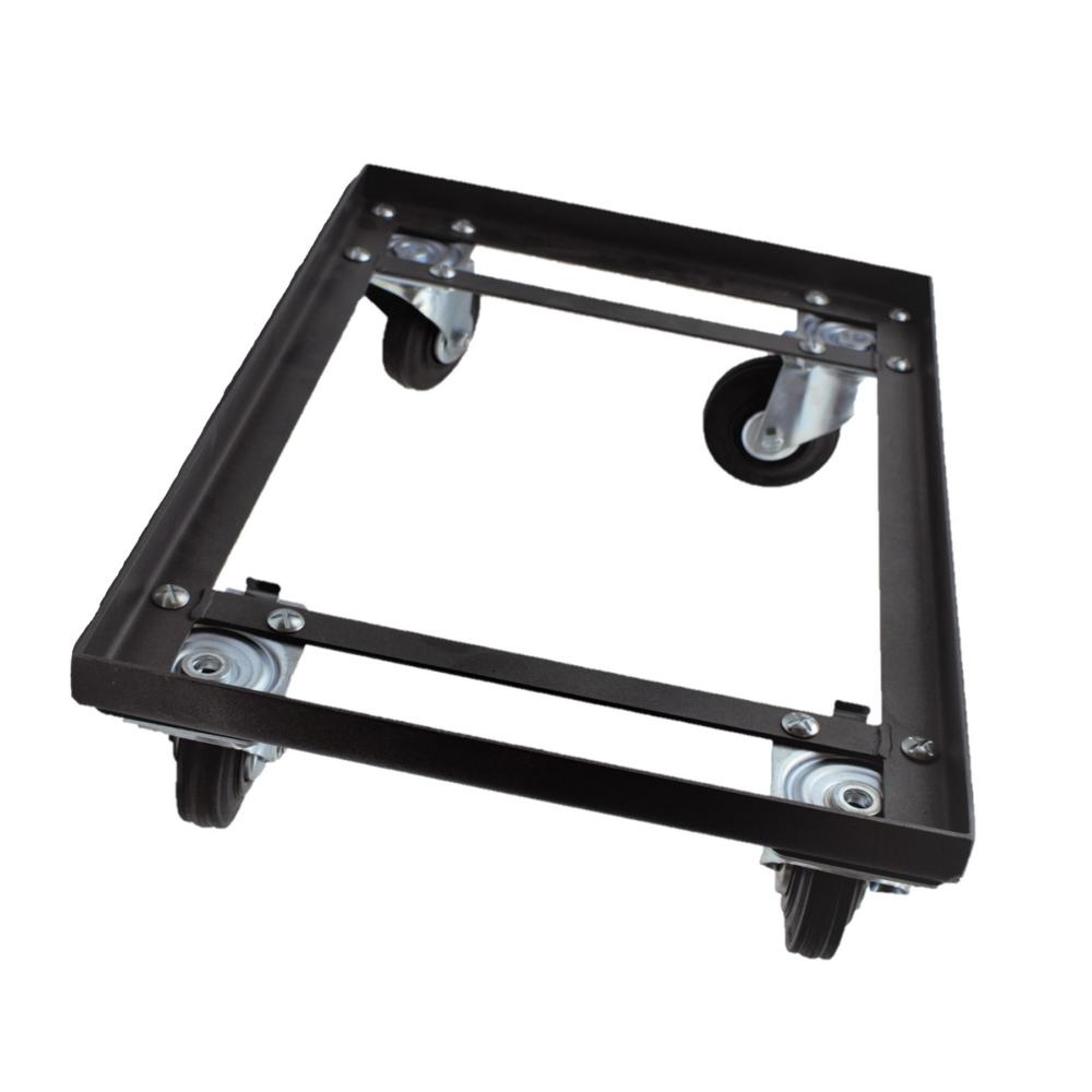 De couleur noir. Ce chariot en acier est Idéal pour le transport de marchandises lourdes, ce chariot facilite la manutention. Ses 4 roues en caoutchouc garantissent une adhérence optimale au sol. Doté de 4 roues pivotantes sur elles-mêmes dont 2 roues avec freins, elles peuvent se démonter facilement en cas de changement nécessaire. Sa forme rectangulaire est parfaite pour le transport de caisses ou de bacs alimentaires empilables et peut supporter une charge maximale de 150 kg.