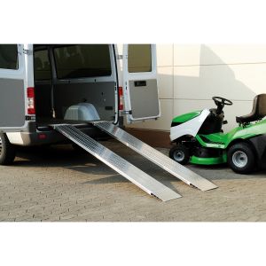 De fabrication Française, cette rampe conçue en tôle d'aluminium 100% recyclable peut supporter jusqu'à 450 kg. Elle est munie de goujons amovibles et de taquets pour ridelles qui renforcent la sécurité et sa surface perforée antidérapante offre une excellente adhérence, même en présence d'eau. C'est un outil idéal pour la manutention, notamment pour le chargement et déchargement de camions.